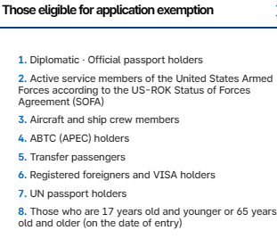 • Temporary Exemption (Crucial Update): As of late 2024/2025, the South Korean government has temporarily exempted nationals from 22 specific countries (including the US, Japan, UK, HK, etc.) from the K-ETA requirement to boost tourism. However, applying for it is still recommended because it exempts you from filling out the paper arrival card at the airport.